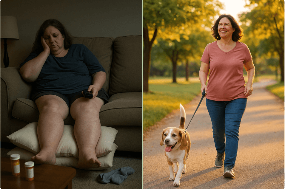 Rebecca went from shuffling in diabetic slippers to wearing regular shoes in 6 weeks. Three months later, she's taking her dog on hour-long walks without sitting once.