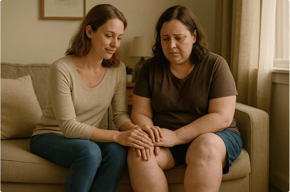 When Rebecca showed her a photo of herself walking her dog without planning rest stops, her sister broke down.