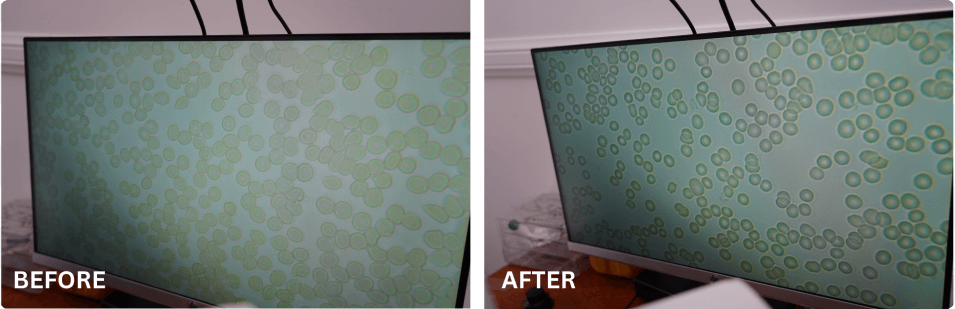 BEFORE: Blood cells all clumped together like cars in a traffic jam